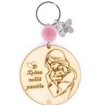 Χειροποίητο μπρελόκ με ξύλινο στοιχείο, κεραμική χάντρα, σουετ κορδόνι.