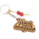Χειροποίητο μπρελόκ με ξύλινο στοιχείο, ξύλινες φυσικές χάντρες, μακραμέ κορδόνι.