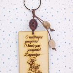 Χειροποίητο μπρελόκ με ξύλινο στοιχείο, ακρυλικές χάντρες, μακραμέ κορδόνι.