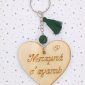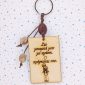 Χειροποίητο μπρελόκ με ξύλινο στοιχείο, ακρυλικές χάντρες, μεταλλικό στοιχείο, μακραμέ κορδόνι.
