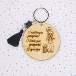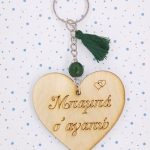 Χειροποίητο μπρελόκ με ξύλινο στοιχείο, ακρυλική χάντρα, χειροποίητη φούντα.