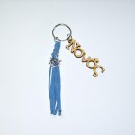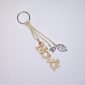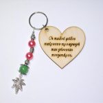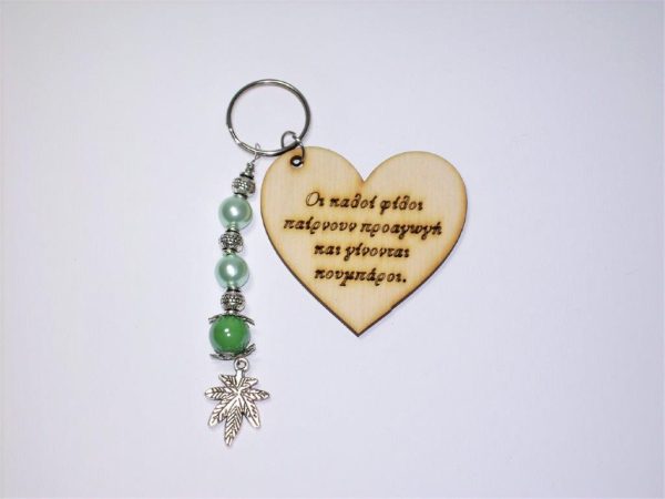 Χειροποίητο μπρελόκ με ξύλινο στοιχείο, ακρυλικές χάντρες και μεταλλικά στοιχεία.