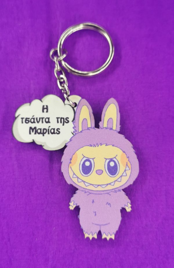 Μπρελόκ Labubu με Όνομα Παιδιού για Σχολική Τσάντα – Χειροποίητο
