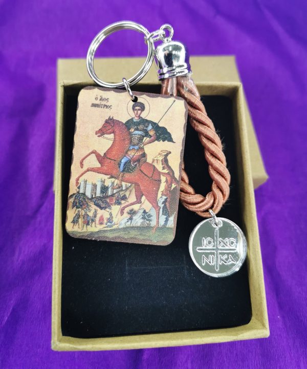 Μπρελόκ Άγιος Δημήτριος – Θρησκευτικό μπρελόκ με κορδόνι και πλεξιγκλάς στοιχείο