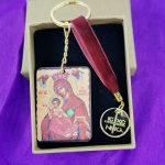 Μπρελόκ Παναγία με τον Χριστό – Θρησκευτικό μπρελόκ με κορδόνι και πλεξιγκλάς στοιχείο