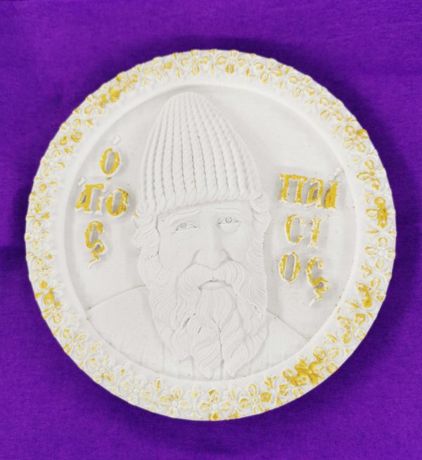 Βαμμένη πορσελάνινη εικόνα Αγίου Παϊσίου 12 εκ. με φινίρισμα χρυσό