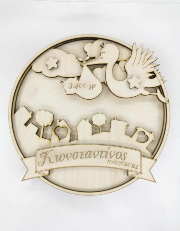 Ξύλινο αναμνηστικό γέννησης 20 εκ. 3d αγόρι κρεμαστό (στοιχεία επιθυμίας σας)