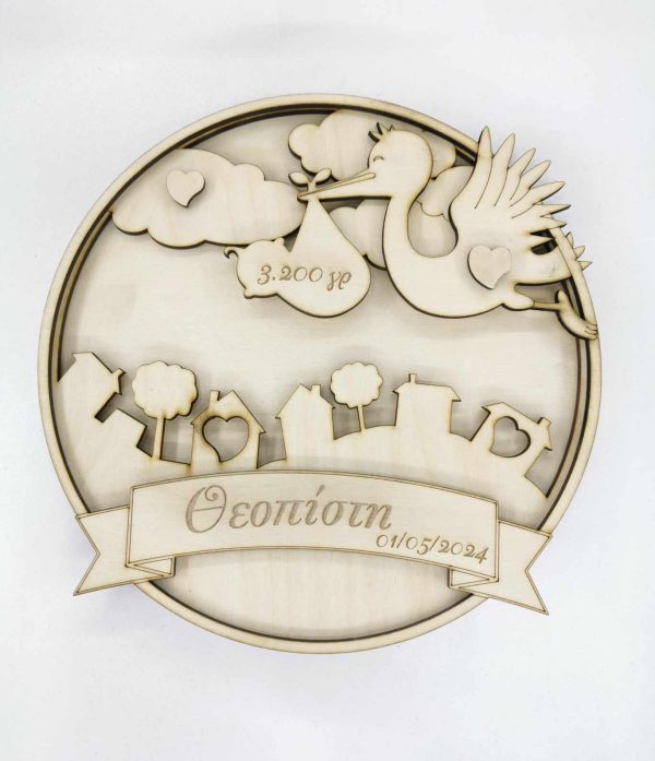 Ξύλινο αναμνηστικό γέννησης 20 εκ. 3d κορίτσι κρεμαστό (στοιχεία επιθυμίας σας)