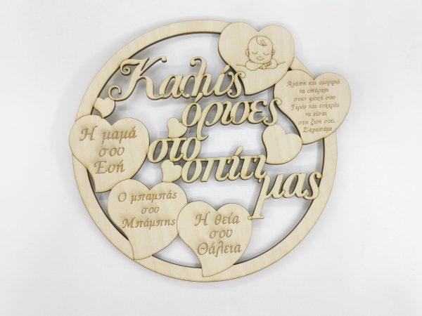 Ξύλινο αναμνηστικό γέννησης 25 εκ. κρεμαστό (στοιχεία επιθυμίας σας)