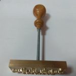 Σφραγίδα ορειχάλκινη με ξύλινο χερούλι, με ανάγλυφη χάραξη για αποτύπωμα/πυρογραφία με θέρμανση.