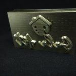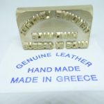 Σφραγίδα ορειχάλκινη με ξύλινο χερούλι, με ανάγλυφη χάραξη για αποτύπωμα/πυρογραφία με θέρμανση.