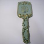 Κερί διαστ. 6Χ13 με διακοσμητικά στοιχεία πηλού, εφέ μπετού και ασημί κεροπατίνα.